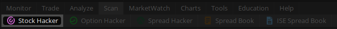 1. Click the Scan tab and choose Stock Hacker from the sub-tab row.