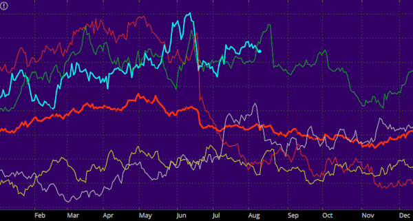 Seasonality plots daily security price for each year specified in the time frame; e.g., a 5y1d Seasonality chart plots 5 lines, each representing the daily price of the specified type: Last, Bid, Ask, or Mark. While one may benefit from analyzing the price action over season of each year, it can also be useful to compare prices on the same day of different years. As the calendrical irregularities are eliminated, none of the yearly lines have any gaps.