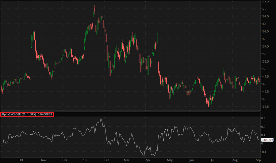 As opposed to Jensen's Alpha, the Alpha2 study calculates the excess average return of a benchmark index relative to the average return of a security or portfolio. Thus, it is equal to average rate of change in benchmark index price minus that of the security multiplied by benchmark Beta2. Alpha2 assumes that the security has a Beta2 of 1.0.