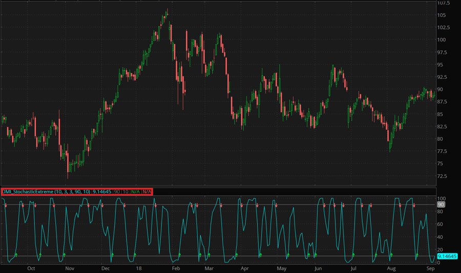 The DMI Stochastic Extreme is a technical indicator that applies stochastic calculation algorithm to values of DMI Oscillator.