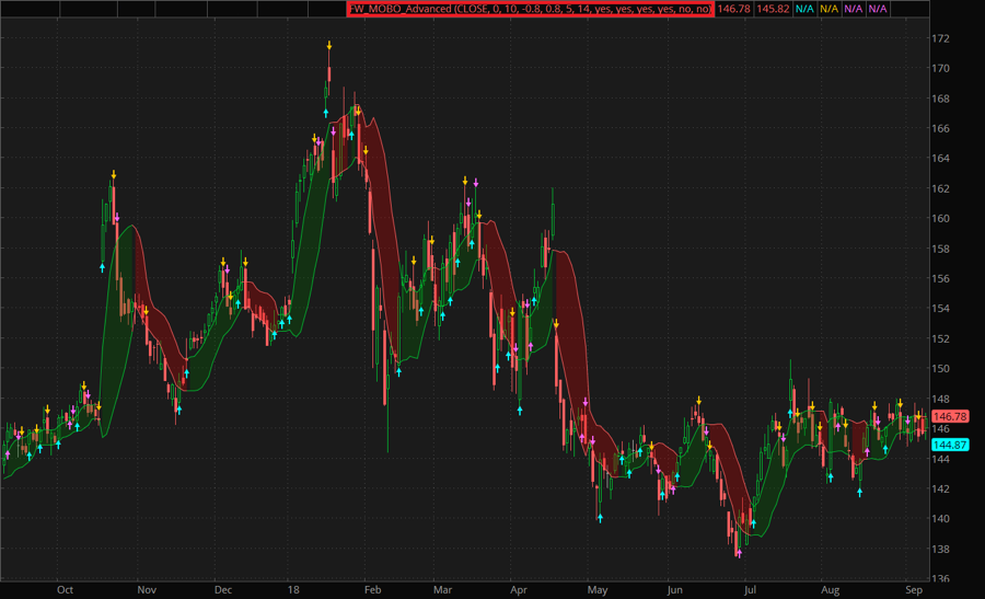 MOBO (Momentum Breakout Bands) study suggests that all markets and stock prices have a period where they chop or have a noise level that is trendless.