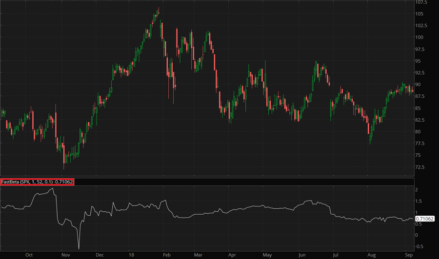 The Fast Beta coefficient is another version of the Beta study: it measures the systematic risk of a security, sensitivity of security's returns to market returns. As the benchmark of this measurement, the market is defined of having a beta of 1.0.