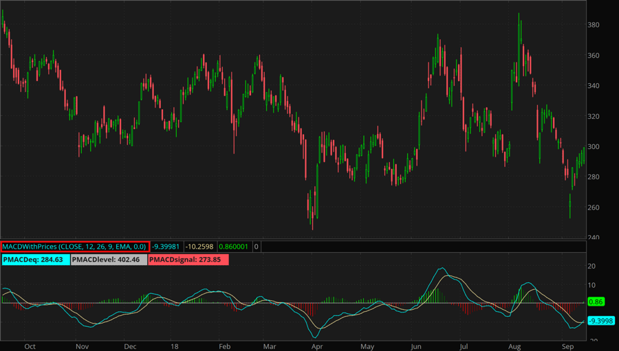 The MACDWithPrices study is a regular MACD(Moving Average Convergence/Divergence) oscillator which also displays labels with Reverse Engineering MACD values.