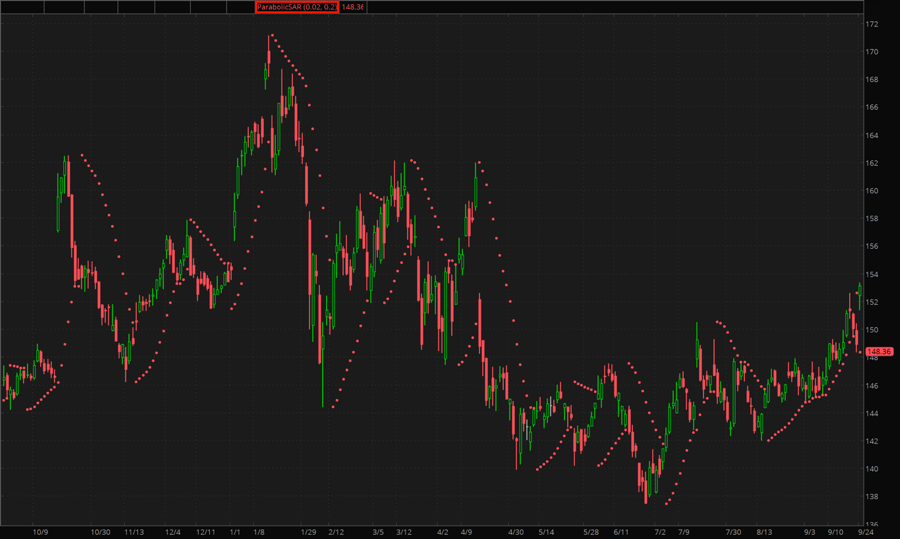 The Parabolic SAR (Stop And Reverse) technical indicator is a study for analyzing trending markets.