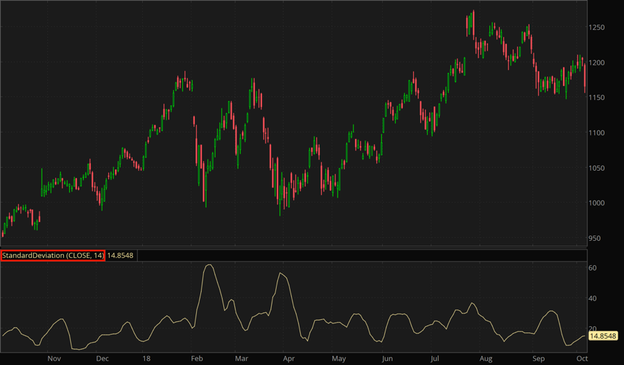 The Standard Deviation study plots standard deviation of price on the specified time period.