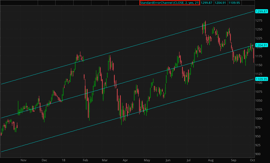 Standard Error Channel analysis can show if prices are cycling higher or lower than equilibrium and if a change in trend might occur.
