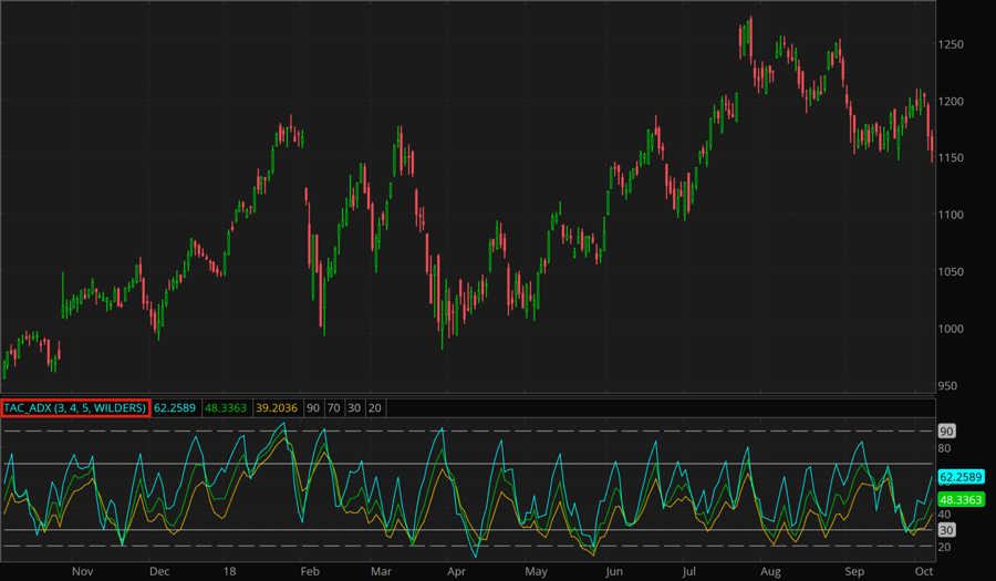 Note that TAC_ADX is also used with TAC_DIPlus and TAC_DIMinus in order to identify market bottoms and tops, respectively. For more information on that, refer to the corresponding articles.